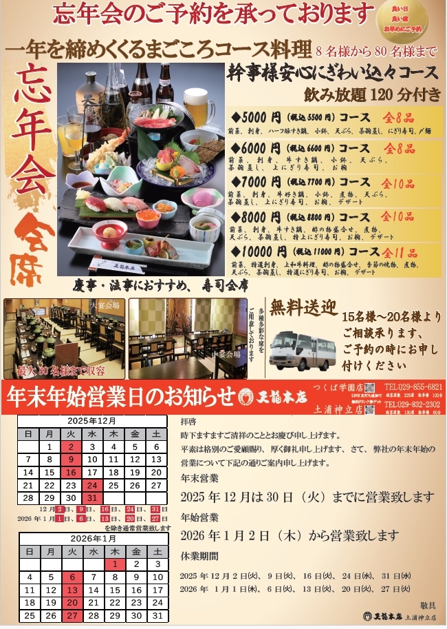 いつも天龍本店をご利用いただき、誠にありがとうございます。