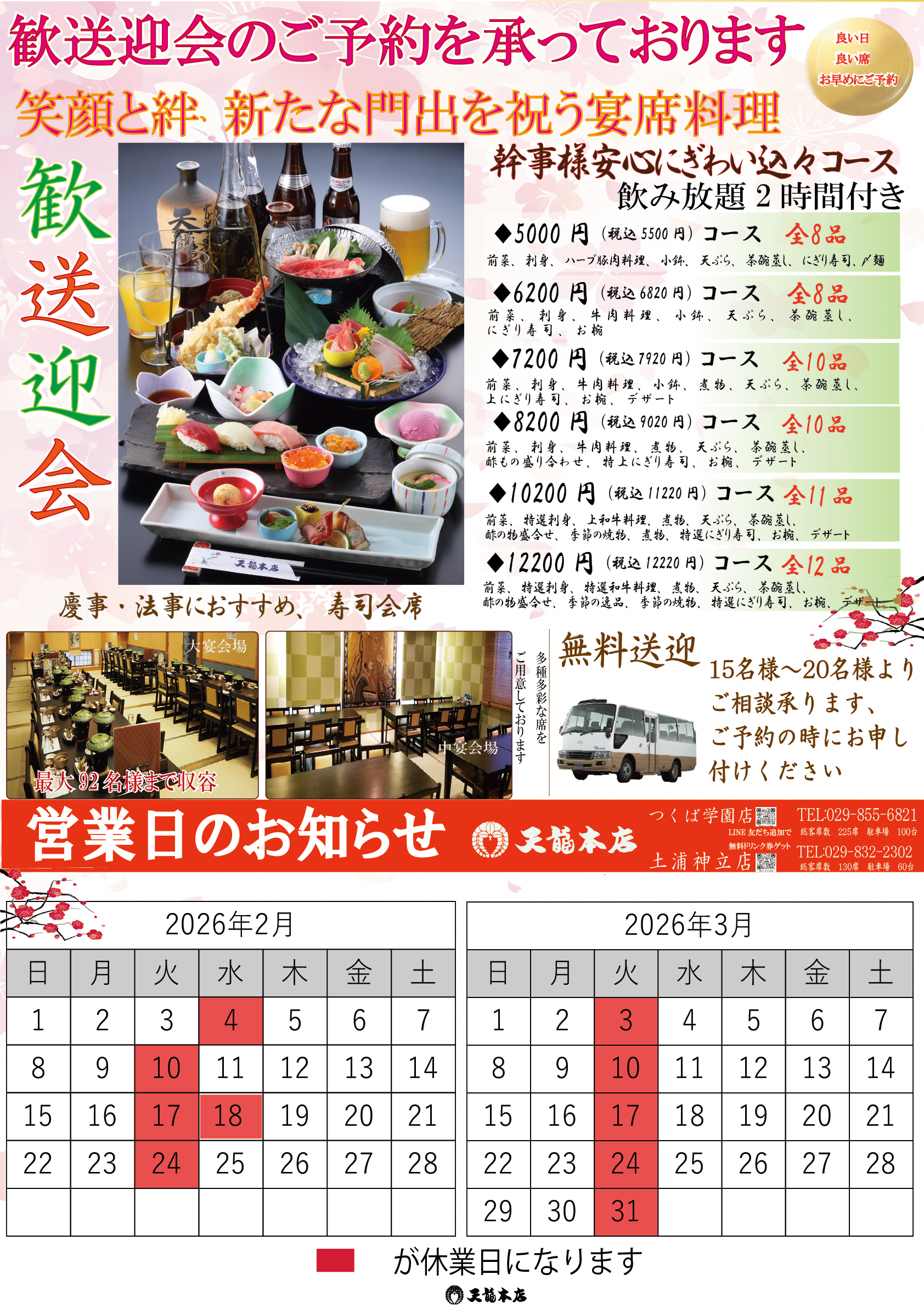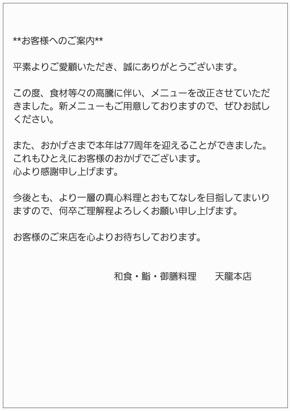 いつも天龍本店をご利用いただき、誠にありがとうございます。
