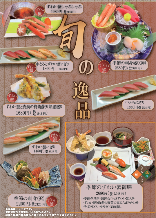 期間限定の旬の蟹フェアと小春御膳のご案内です