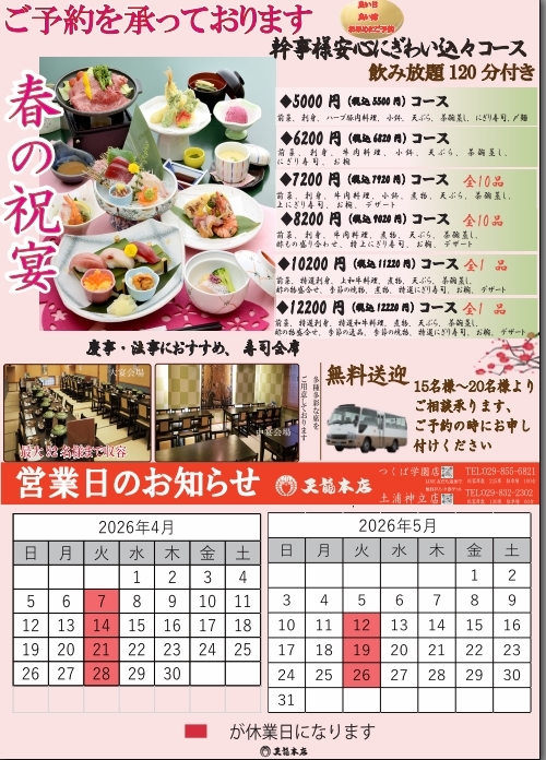 いつも天龍本店をご利用いただき、誠にありがとうございます。