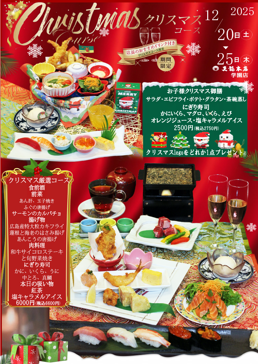 さて、天龍では今年もクリスマス限定の(クリスマス)サンタさんLEGO付きのお子様クリスマス御膳&ディナー厳選コースをご用意いたしました。