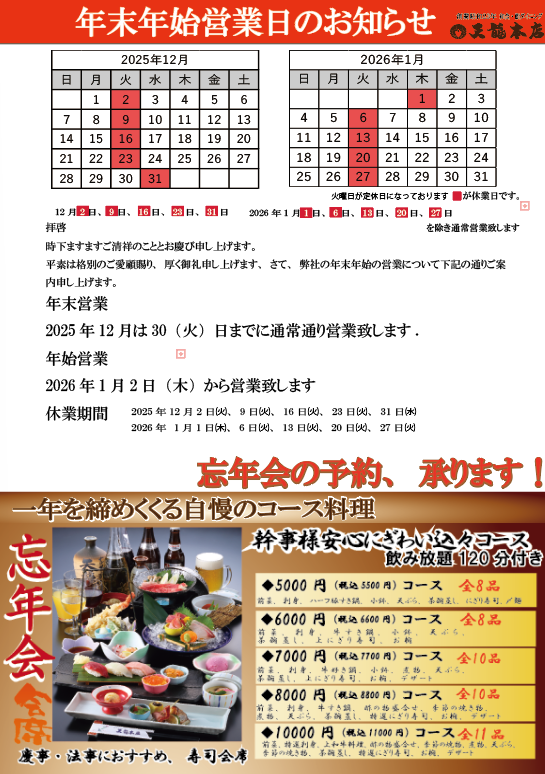 *仕入れなどの都合によりメニュー内容異なることがございます